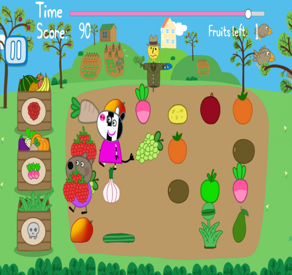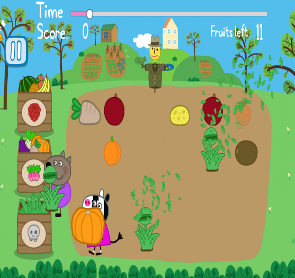 规则:小猪必须确定,生长在花园里,水果,蔬菜,或杂草,收获和移动在正确的篮子里。你必须帮助小猪解决这些简单的逻辑任务