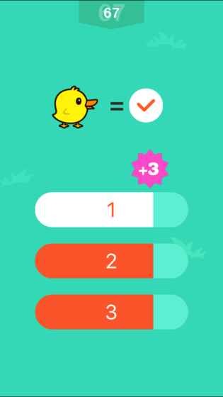 2.小鸭子走完后,会随机提问你其中的某种小鸭有几只,例如“向左走的小黄鸭=?”(你不仅要注意问题中小鸭子的颜色而且要留意它的方向!)