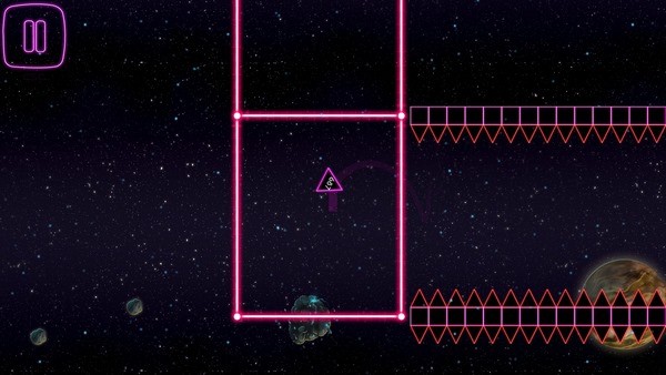 是一个快节奏2D游戏。游戏需要玩家有着反应灵敏的控制,这将可以让你击败游戏中每一个难点。你需要控制你的小三角来闯关,游戏相当简单,但却绝对不粗糙,是打发时间的好选择。