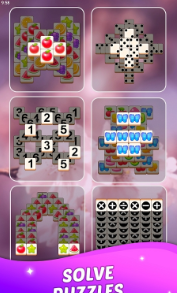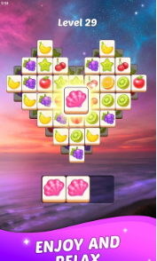 在这款匹配瓷砖风景游戏里面有很多的方块需要玩家去消除,根据方块上的图案来寻找相同的进行连接消除,消除的越多那么得分就会越高,分越高得的奖励就会越多,前面的关卡都比较的简单,到了后面就不会那么容易了,消除方块还有好听的特效配音。