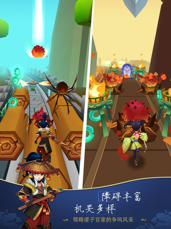 《战国跑酷》是一款以春秋战国时期为时代背景,结合跑酷、战斗操作的对抗性休闲竞技游戏。游戏完美还原历史,更有创新故事,各种机关障碍,百家名士,让你停不下来,更有独特的BOSS战,让你战个痛快!