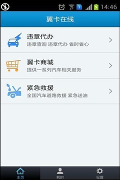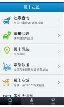“翼卡在线”是翼卡为车主用户打造的,首个APP服务软件,它为客户提供:违章代办、紧急救援、翼卡商城等服务,“翼卡在线”聚焦车主需求,提供行车、用车一站式服务。
