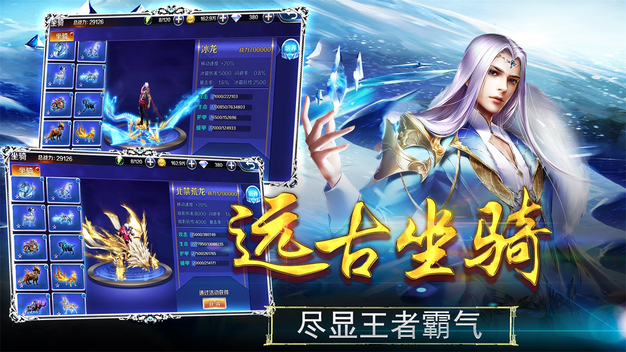 3、酷炫技能、霸气称号、专属奖励让您一出场就是王者风范,尽情独霸江湖。