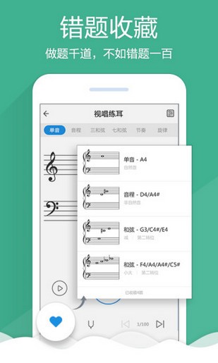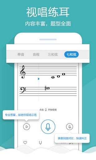 2. 视唱练习:包括单音、音程、和弦、节奏、旋律等多种视唱练习,支持五线谱和简谱。
