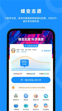 蝶变志愿app是一款专为高考生打造的志愿填报辅助软件。它提供全面且精准的院校和专业信息,涵盖历年录取分数线、招生计划等关键数据。通过智能算法,根据考生成绩和意向,生成个性化的志愿填报方案,帮助考生科学合理地选择院校和专业,为高考志愿填报提供有力支持。