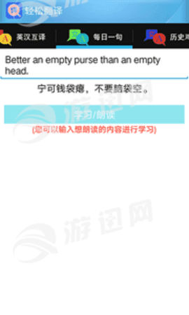 2.《轻松翻译》拥有每日一句功能,让你时时学习。