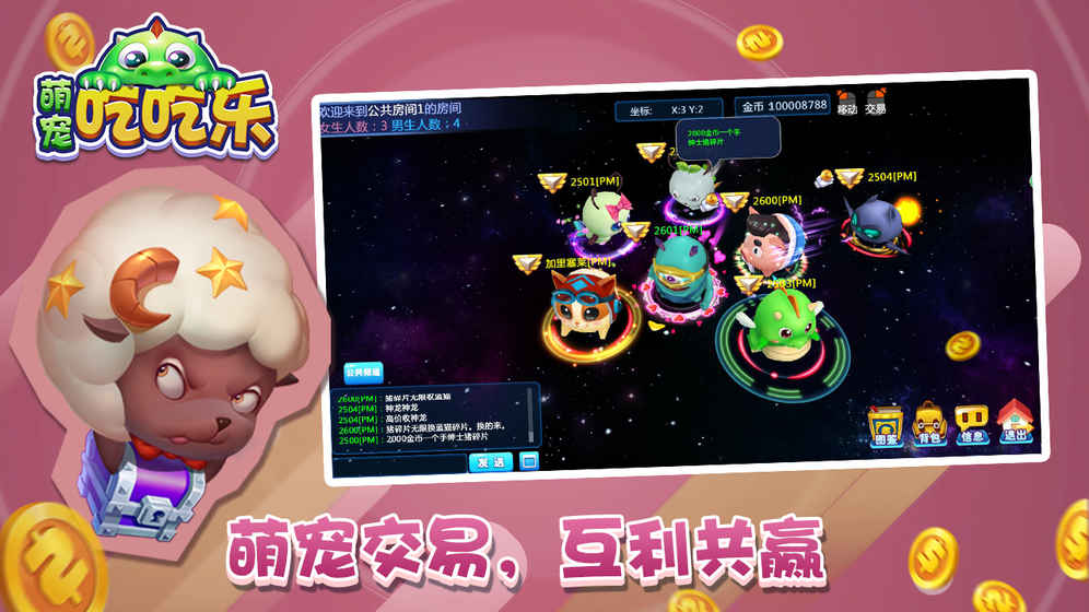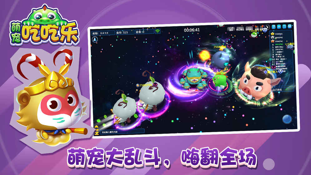 《萌宠吃吃乐》是一款吃货题材的休闲类手游,超萌的卡通风画面,个性可爱的角色,在游戏中,玩家通过收集萌宠碎片来让自己的萌宠壮大,参与激情的战斗,吃掉比自己小的宠物,嗨翻全场,等你来玩!