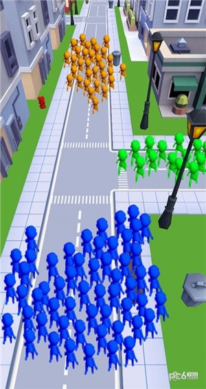 在拥挤的城市游戏中,玩家可以在这个大型3D 模拟城市中四处移动游走圈粉,粉丝越多则越能将其他团体同化吞并,与其他团体操控者实时对战,淘汰其他的团体,积累自己的人气,组成百人大军!简约精致的画风,灵活可爱的人物模型,大型真实且乐趣十足的完美城市将给玩家带来酣畅淋漓的百人大乱斗体验。只要遇到比你的军团人数少的队伍,你就可以将对手的人群吞噬,你的人群会变得更大,背后人群数量最大的领导即可获得胜利,收集他们的力量来守护城市吧。