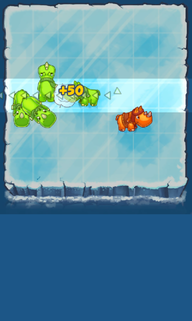 拖动犀牛撞击相同颜色的犀牛。游戏中还有丰富的道具可供玩家选择,有可以让你产生3连击效果的炸弹,还有很多道具等你去发现。