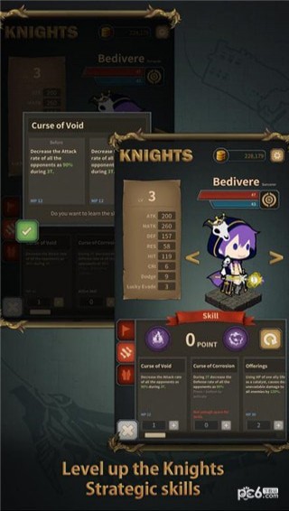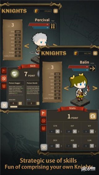 用力量,智力,活力,敏捷,敏捷和运气培养骑士 - 通过使用九种类型的骑士和具体的操作技能,您可以战略性地分配六种能力来享受广泛的战斗类型。