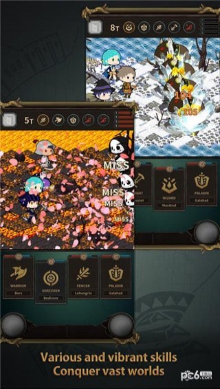 并不是Roguelike(扎心了,地牢居然还不是)。不过它的战斗模式十分地有意思。首先是站位。我方站位是一个4*2的格子,游戏最多可以安排四种不同职业进行战斗。(初期两个)站位仅有Frontline(前排)和Backline(后排)。其次,战斗的模式。回合制的战斗,到我方战斗时,仅有四个选项——中间左侧是战斗,中间右侧是躲避,或是格挡。(中右的按钮功能视乎职业而不同,不过功能都是躲避+补血)屏边的左右两侧是技能。(有点意思)