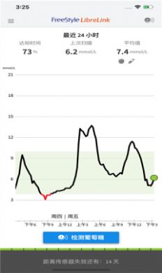 2. 长周期监测:传感器可持续使用14天,期间每5分钟自动记录一次血糖值,提供全面的血糖变化曲线。