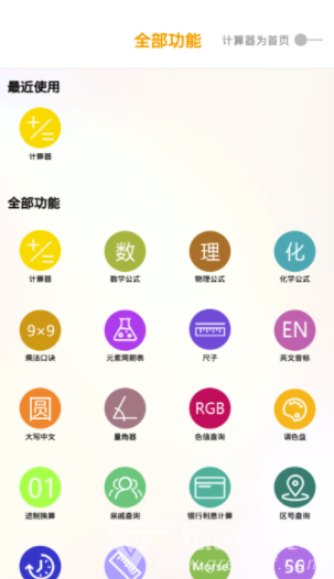 3. 功能选择:在应用主界面选择所需功能,如调色盘、公式查询等。