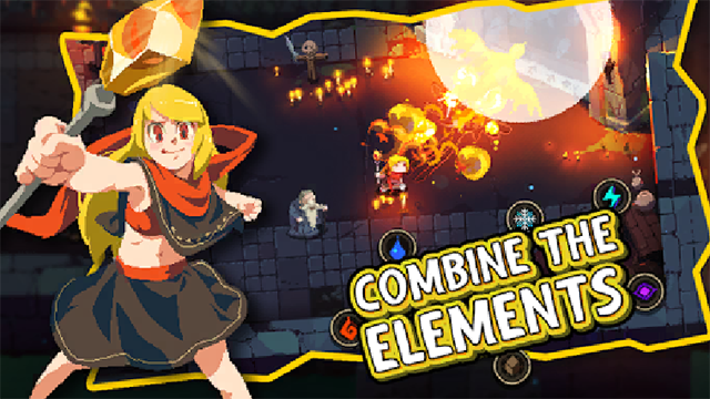 1. 高自由度策略战斗:六大元素可组合出数十种技能,如“水+电”触发连锁闪电、“暗+火”召唤地狱火,玩家需根据敌人属性(如火系克制冰怪)实时调整技能组合,战斗策略深度远超传统像素游戏。