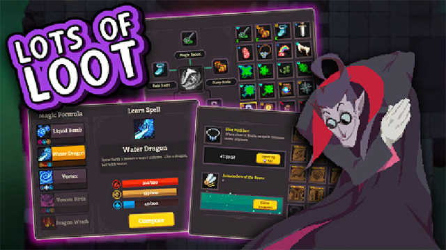 4. 沉浸式像素美学:复古16位色画风搭配动态光影效果(如火系技能释放时的粒子特效),配合环境互动音效(如土系技能触发机关时的齿轮声),营造出极具代入感的奇幻世界。