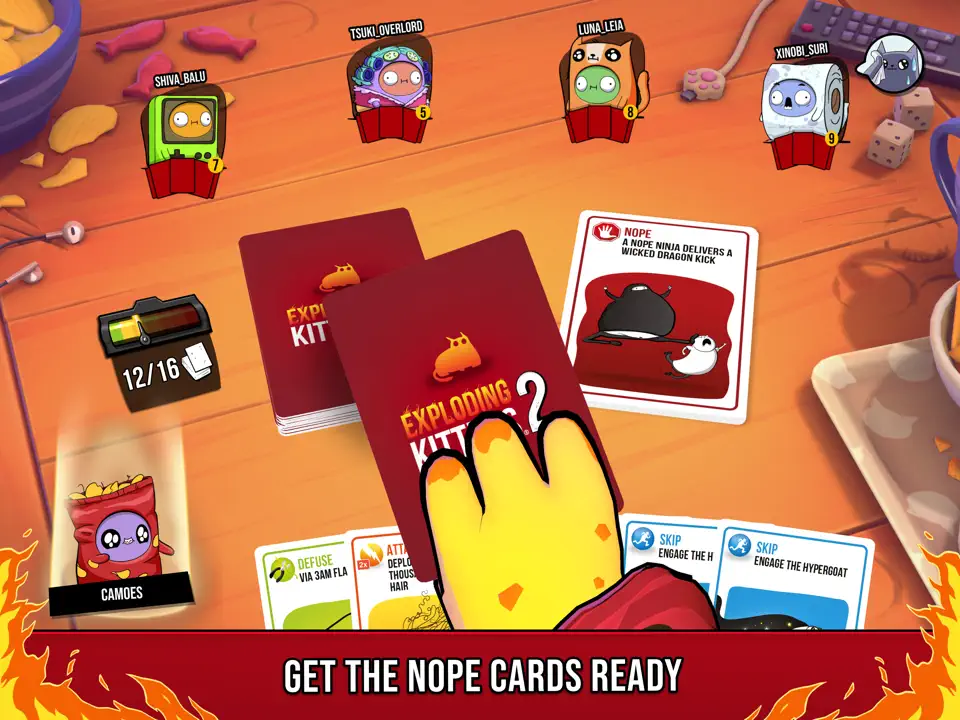 5. 表情与社交互动:合理使用游戏内置表情符号与好友互动,例如在对手抽到“爆炸猫”时发送庆祝表情,或在关键回合发送紧张表情增加趣味性。通过密码房间功能邀请好友组队,提升对战默契度。