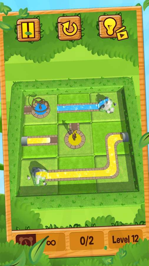 我们面临的挑战将越来越大,你需要按颜色连接,使用环形结构等等!你能够将所有的树木连接到水源吗?