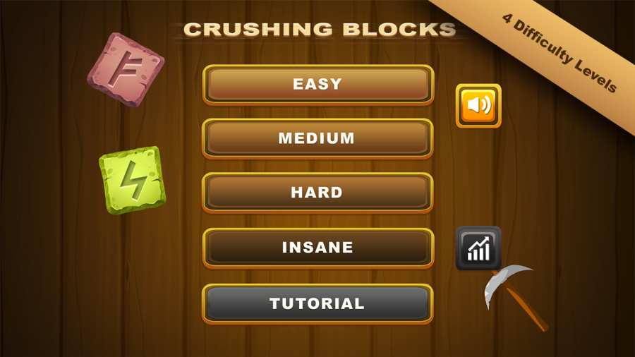 1、4个难度级别可供选择:简单,中等,困难和疯狂;