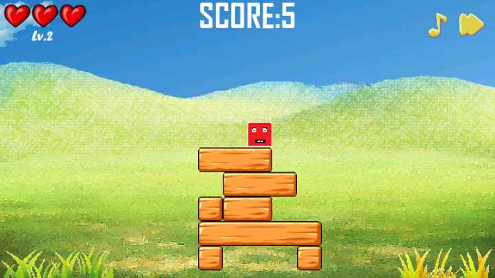 游戏规则:尽可能的消除木头,不要让小红人落地。