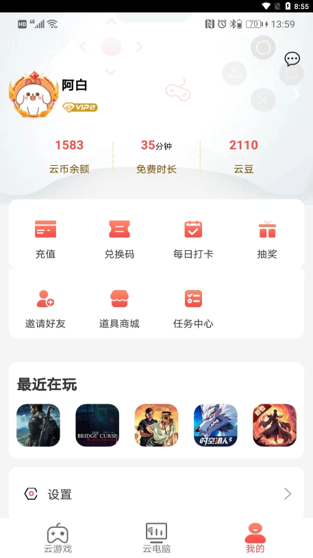畅玩云游戏是一款专为游戏爱好者打造的云游戏服务平台,它利用云计算技术,将游戏运行在远程服务器上,让用户无需下载和安装即可在手机、平板等设备上流畅体验各种大型游戏。无论是pc端的3a大作还是移动端热门游戏,畅玩云游戏都能提供高质量的游戏体验,满足玩家的多样化需求。