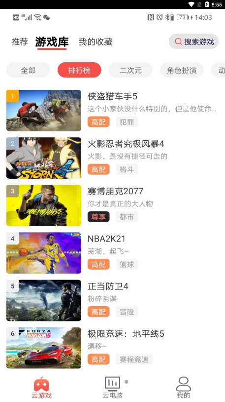 4. 丰富游戏库:涵盖模拟、策略、竞技、冒险、动作、角色扮演、休闲等全品类游戏,满足不同用户的游戏需求。
