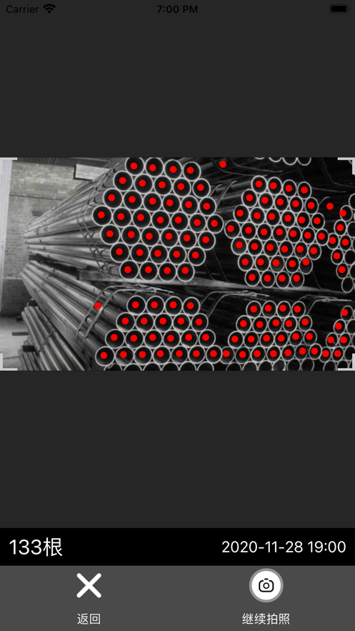 1. 拍照识别:打开应用后,选择拍照识别功能,对钢管堆进行拍照。