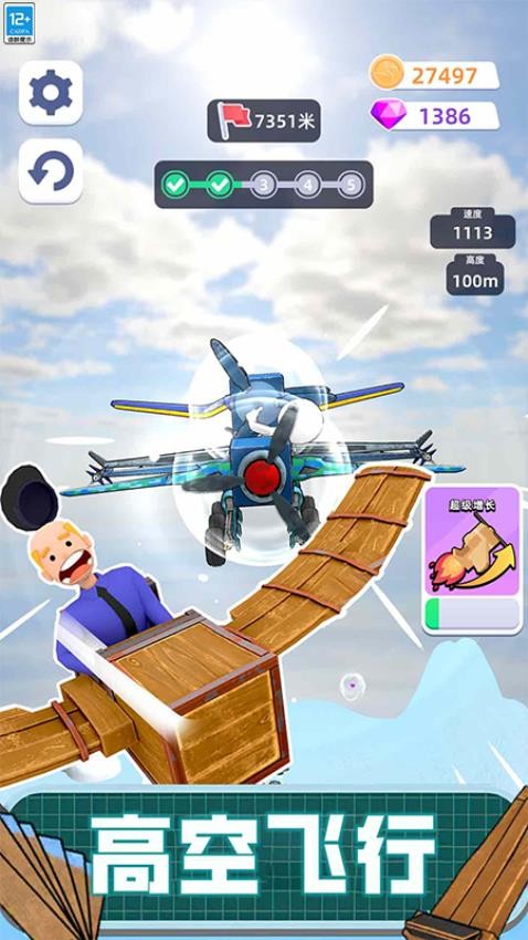 3. 深度技能与装备系统:玩家可通过升级解锁飞行速度提升、能量盾、激光攻击等技能,并自由搭配不同元素手套(如火焰、冰霜、雷电)组合战斗策略,装备改造系统支持个性化定制飞行器性能与外观。