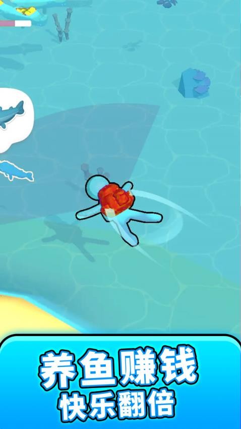 2. 基础操作:长按屏幕移动角色至海底,靠近鱼类后自动触发捕鱼进度条,持续追踪鱼类直至捕捉成功,背包满后返回岸边卸货。