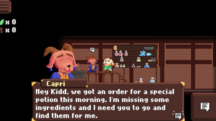 1. 基德(玩家角色):药水店学徒,性格乐观且富有好奇心,通过冒险逐渐掌握药剂调配与战斗技巧,最终成长为能独立经营药水店的资深药剂师。