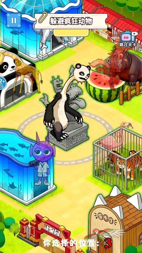 1. 动态环境与狂暴动物系统:游戏内设长颈鹿区、企鹅馆等十余个主题区域,每个场景均存在具有攻击性的狂暴动物(如熊猫怪物、鲨鱼等)。动物行为模式基于真实习性设计,例如熊猫会突然冲撞、鲨鱼会沿固定路线巡逻,玩家需通过观察记录其行动规律,制定针对性躲避策略。