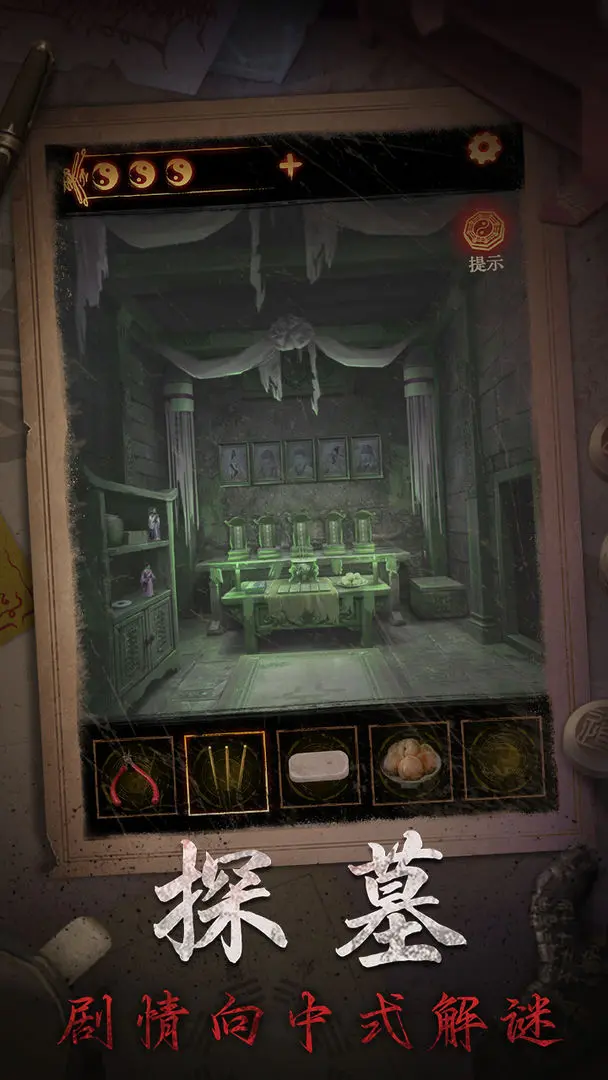 1. 优先收集线索道具:进入场景后,优先点击可交互物品(如壁画、书籍、机关盒),获取线索与道具。例如,第一章中需通过《风水术》书籍破解密码58461。