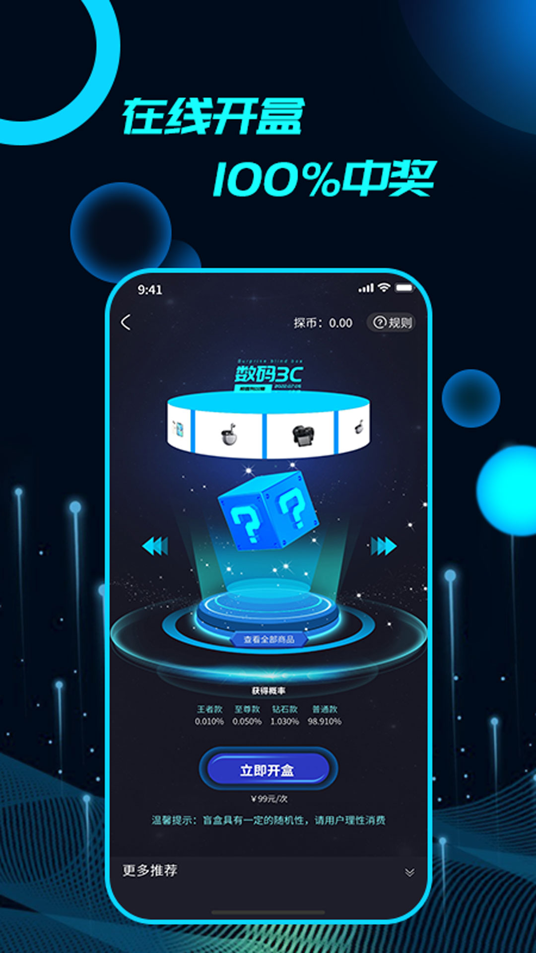 2. 独特的盲盒玩法:软件采用盲盒购物形式,用户在购买时无法预知具体商品,这种未知和期待为用户带来了极大的购物乐趣。