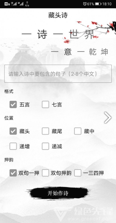 1. 一键生成:用户只需输入关键词或主题,选择喜欢的诗体(如五言绝句、七言律诗等),点击生成按钮,即可快速获得一首连贯、优美的诗词。