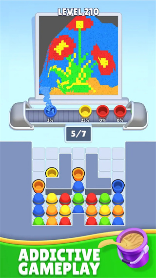1. 核心分拣玩法:沙环付费版的核心玩法是通过点击操作将不同颜色的沙桶放置在传送带上,引导彩色沙子按颜色分类落入对应收集桶。这种玩法既考验了玩家的反应速度和手眼协调能力,又锻炼了玩家的逻辑思维和空间规划能力。
