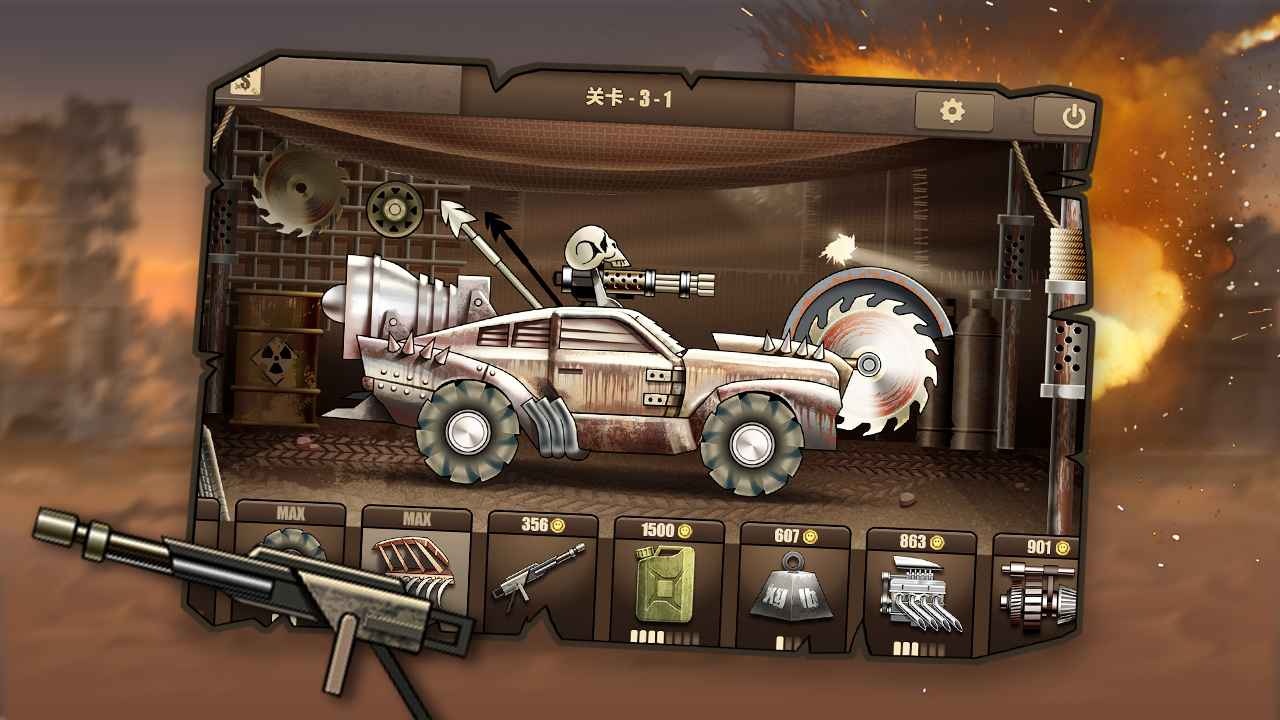 2. 车辆改装系统:提供护甲、机枪、燃料箱、喷射装置等超20种可升级部件,玩家可自由搭配组合,打造专属末日战车。