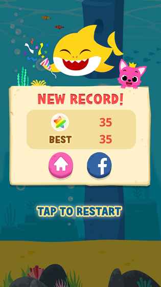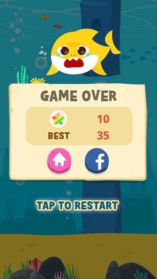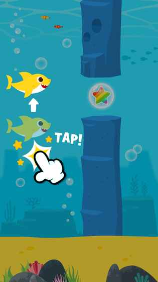 轻按鲨鱼宝宝,让他游来游去并吞食星星泡,但要当心障碍哟。