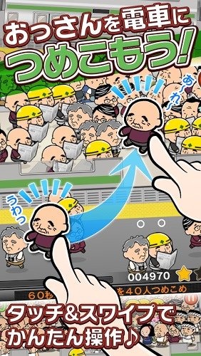 玩家需要用手指把大叔们尽量挤进地铁中。但是要注意不能野蛮地乱扔,禁止不文明不礼貌的行为喔。将你的双人热好,准备去征服100多个地铁站,把所有大叔都扔上车吧。
