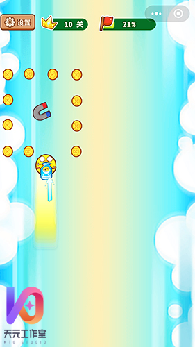 由“天元工作室”发行的《可口大冒险》是一款可爱休闲的跳跃小游戏,玩家需要控制小黄鸡“布叮”不停地向上跳跃,躲避障碍获取道具突破层层关卡,解锁更多场景和玩法。