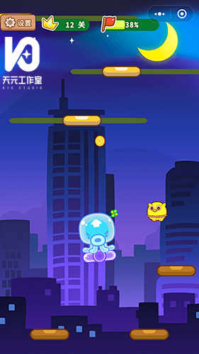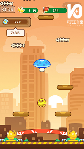 2、玩家需要控制“布叮”不停地踩踏跳板来上升闯关;