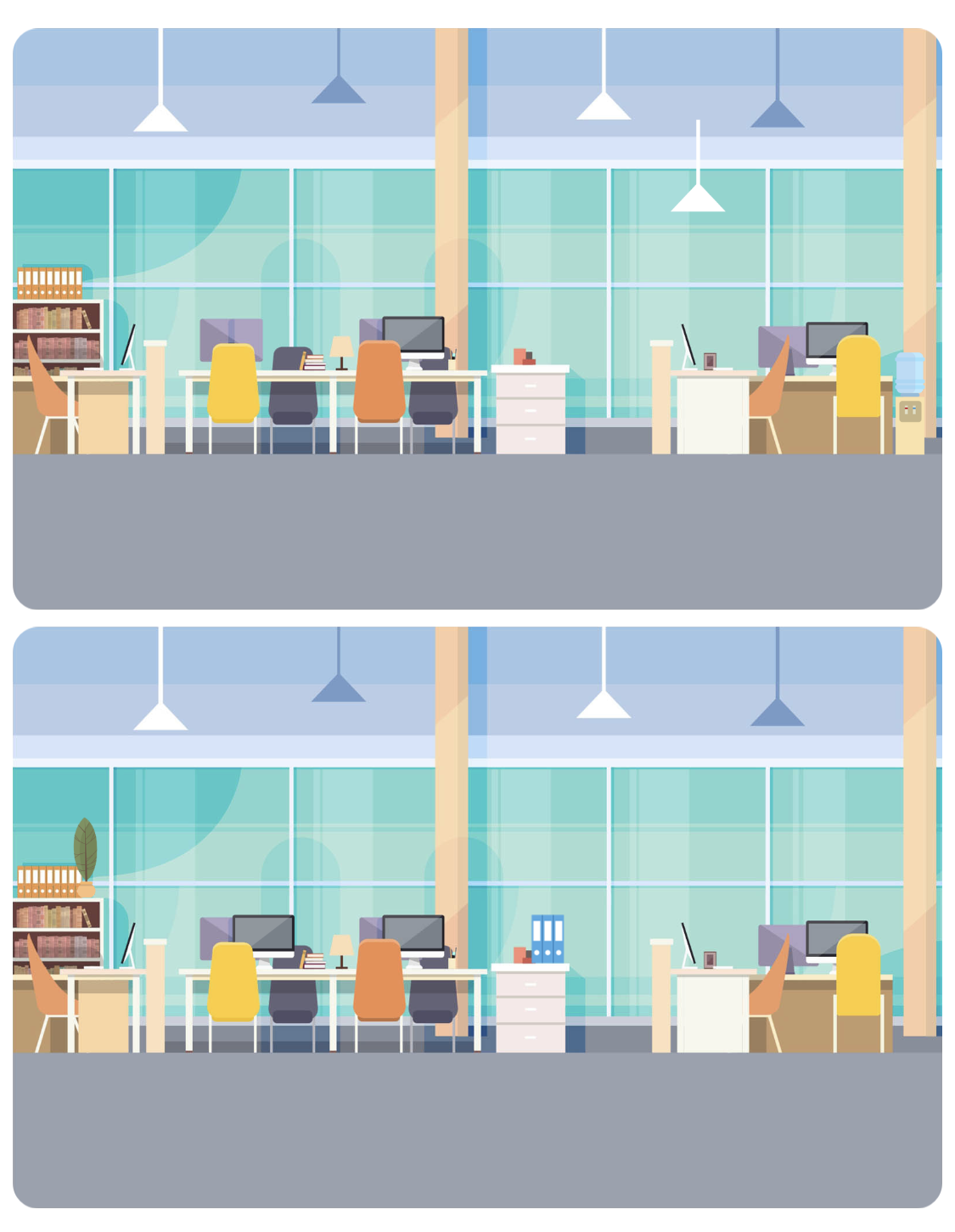 1、观察两张不同的图片,找到不同点