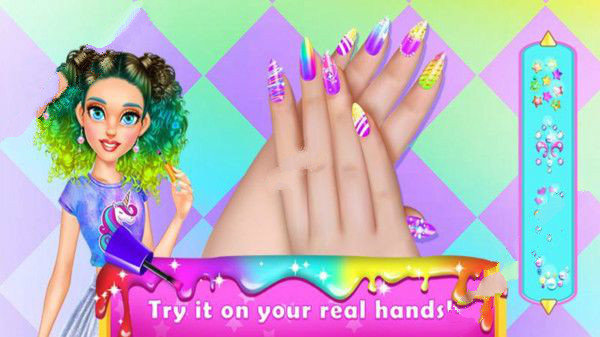 2.帮助每一位女孩设计各种风格独特色彩缤纷的彩虹指甲,享受梦幻般的美丽色彩;