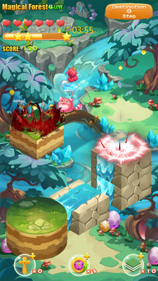 在游戏中多种多样关卡格子的障碍,不同的效果,需要玩家有一定策略性的操作才能控制角色通关。闪电黑屏、寒冰冷冻、飓风击退 等等有趣的陷阱效果等待你的发现;