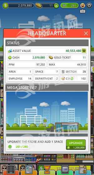 ■安装安装来自不同部门的部分并升级它们以最大化收入。创建额外点的特殊部分并展开商店。