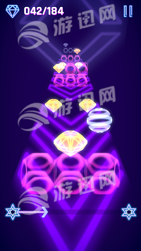 3:你需要去收集在赛道上散落的各种各样的宝石和金币来增加你的分数,并且还能够解锁更多不同类型的小球皮肤。