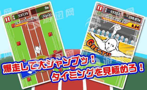 《仰天飞翔》是一款脑洞大开的跳跃休闲游戏,在游戏的助跑阶段需要快速交替点击红蓝按钮,还要在极短的跳跃区内点击黄色按钮跳出,之后就不用管了,看主角能一脸舒爽飞到多远,谜之魔性的一款游戏。