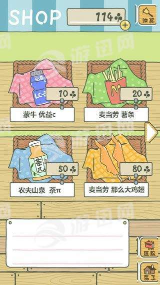 6、商店右上角还有万恶的【抽奖】,5张券来一发,奖品内容见图。抽奖券可能由蛙旅行带回,朋友也会寄来,购物时还会随机掉落。