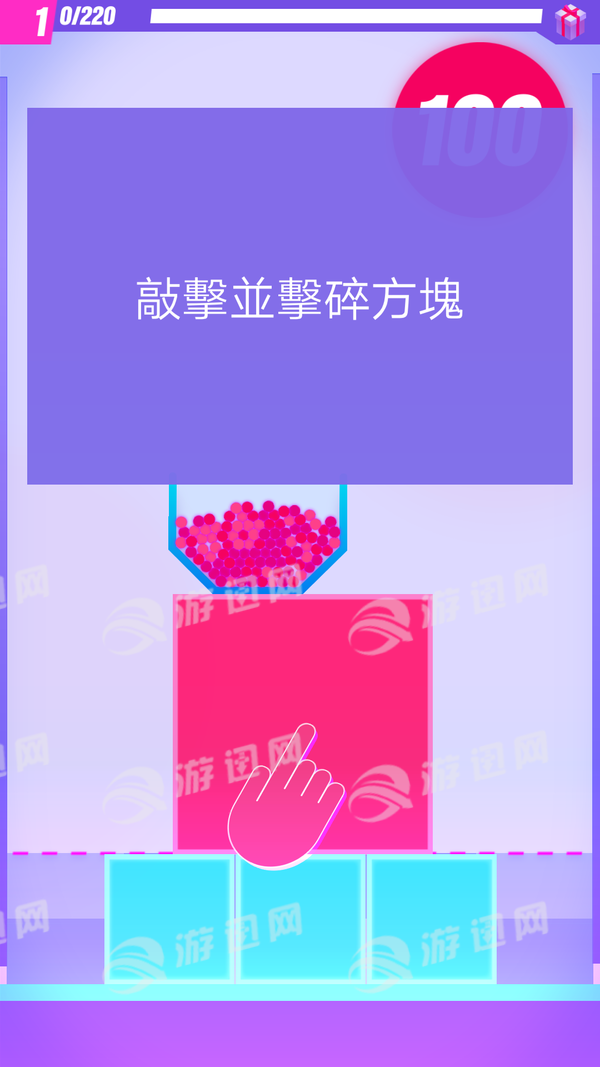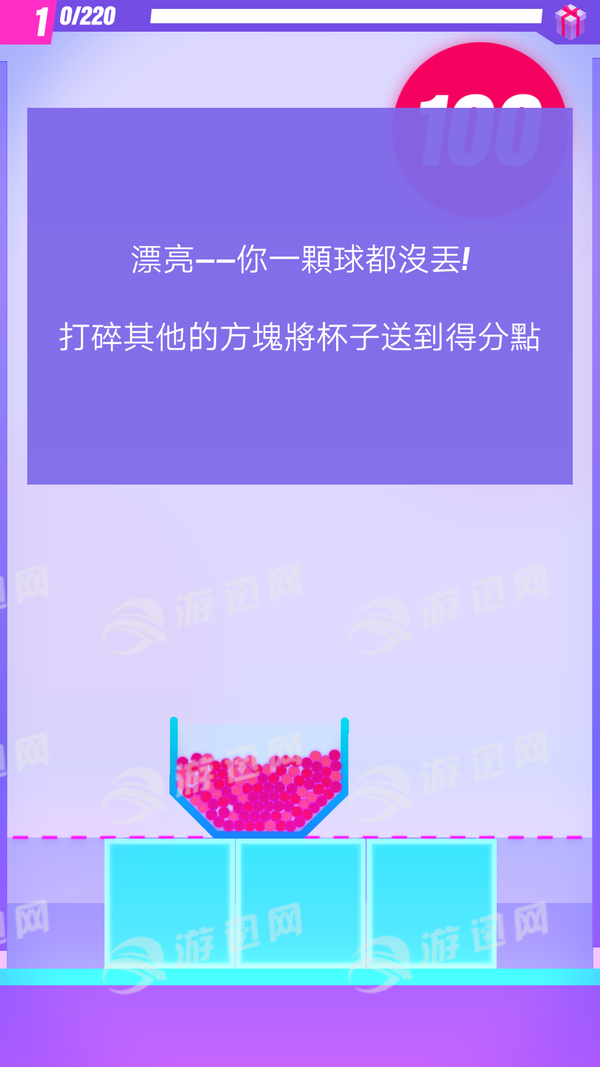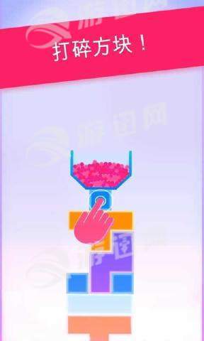 2、点击方块进行击碎,同时需要保持容器平衡性担心小球溢出