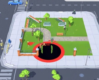 2、想要获得高分的话,操作的就必须有侵略性,开局正常吃这些小车子,树、路灯这样的东西,等我们的黑洞体积大一些了,就赶快去吞噬其他玩家的黑洞,这样才是成长最快的方法。
