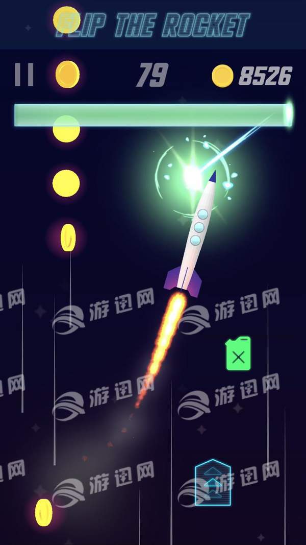 1、点击屏幕,翻转火箭