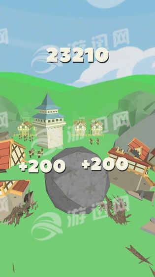 仔细瞄准,并将巨石滚下山去,尽可能挤压更多的建筑物。